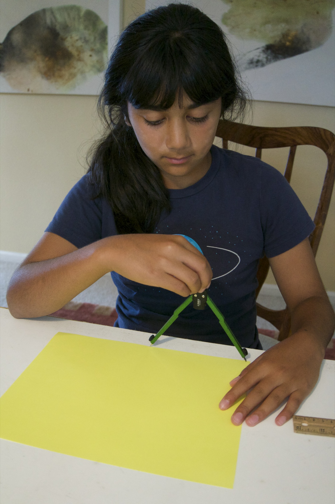 2. Find the horizontal center on your paper by folding it in half. Use a compass to draw a semi-circle on your paper.